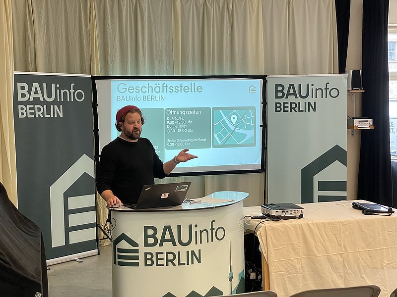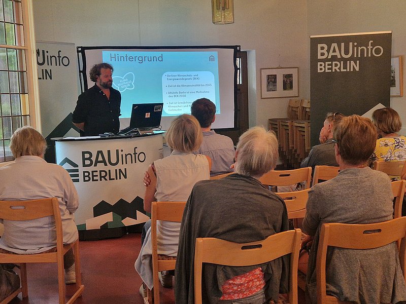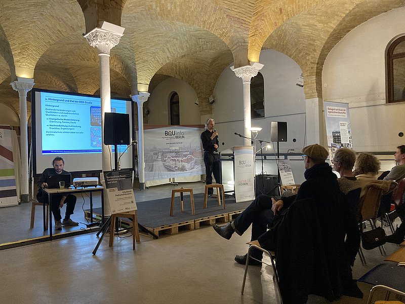 Referent:innen: Dr. Elisa Dunkelberg, SenMVKU; Anne Ehlers, BAUinfo Berlin / Verbraucherzentrale Berlin e.V; Ralph Piterek, LFE e.V.; Marko Berthold, Ecomind GmbH